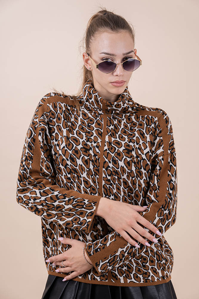 Блуза Поло Тигров Принт Тъмно Кафява