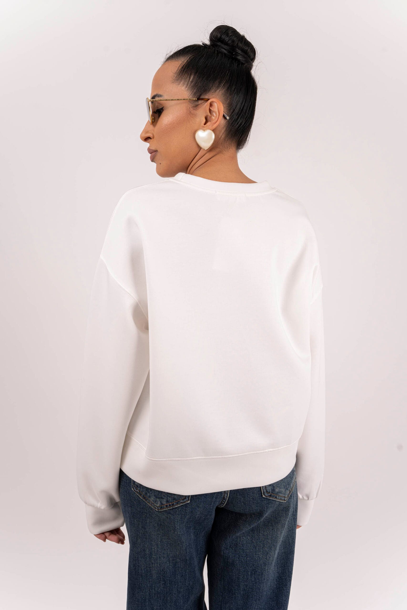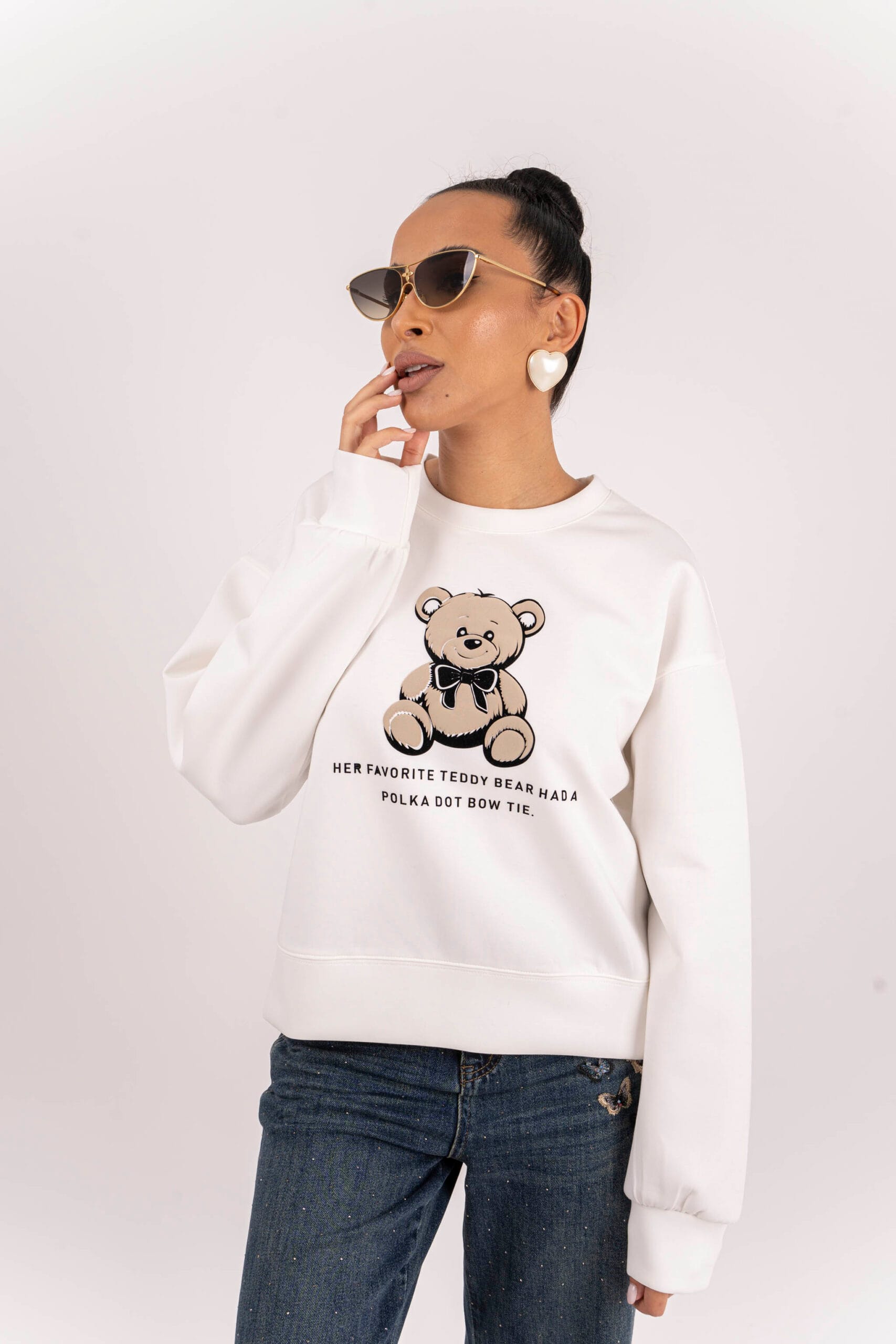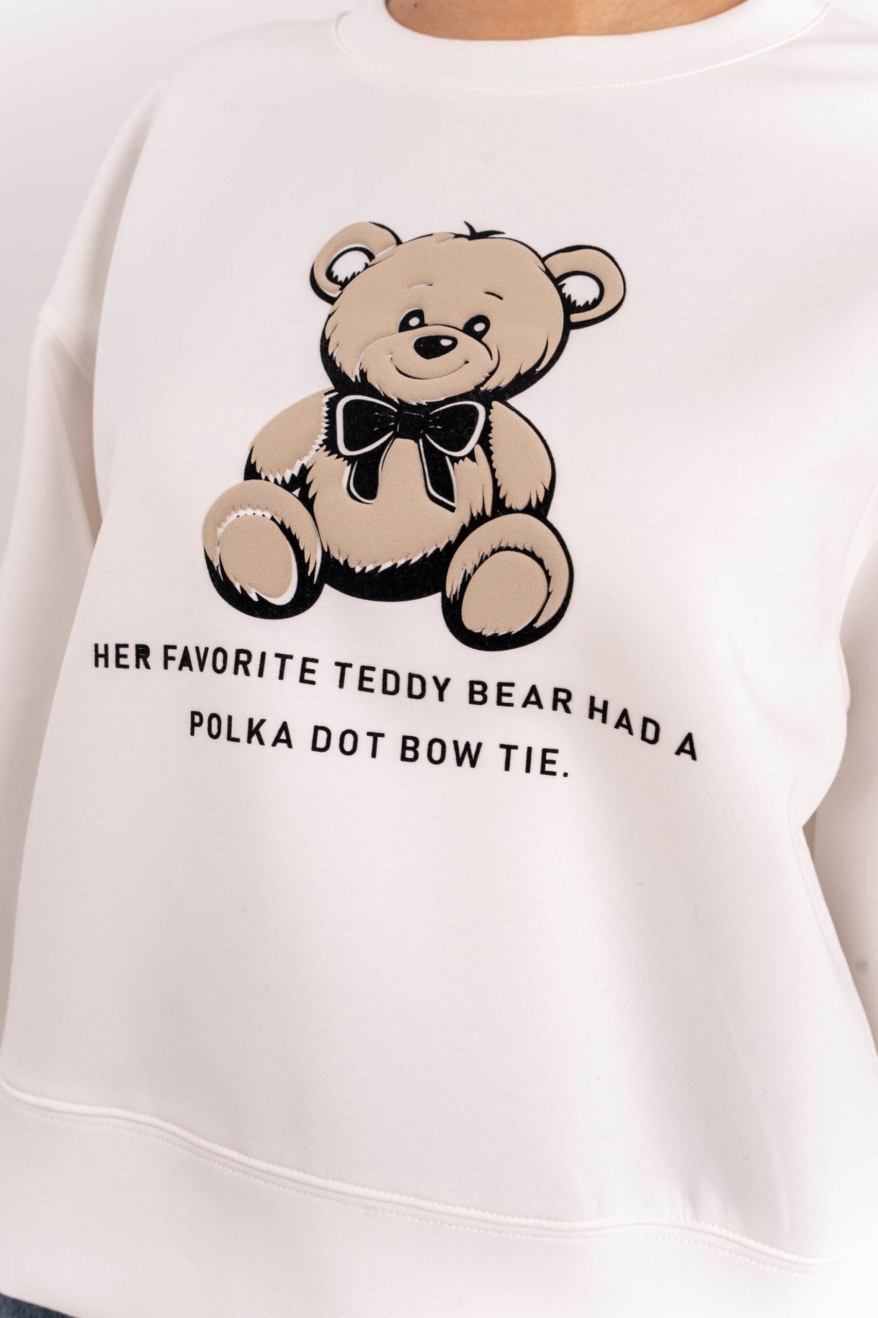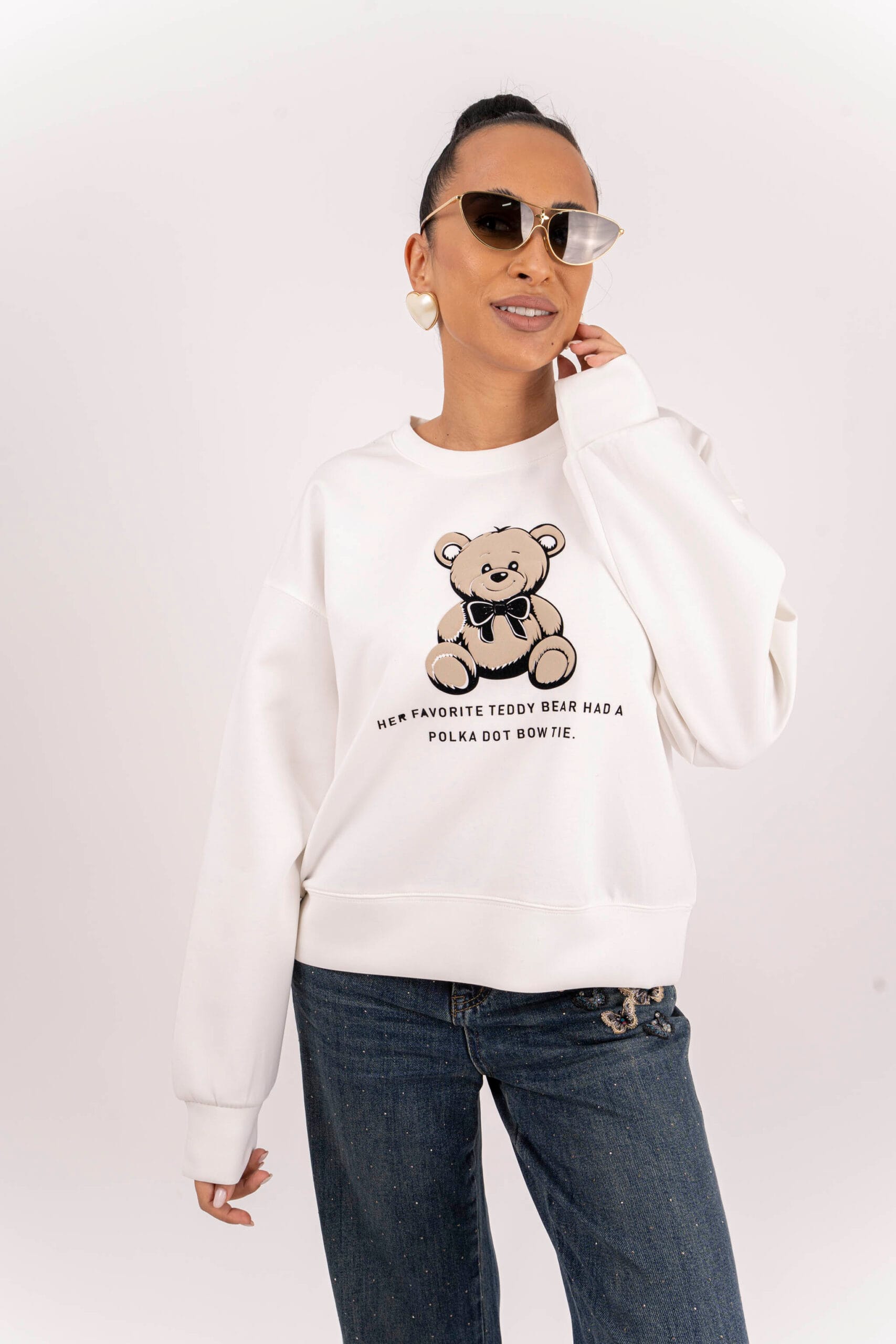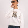 Готина спортна блуза с акцент мече в цвят екрю .