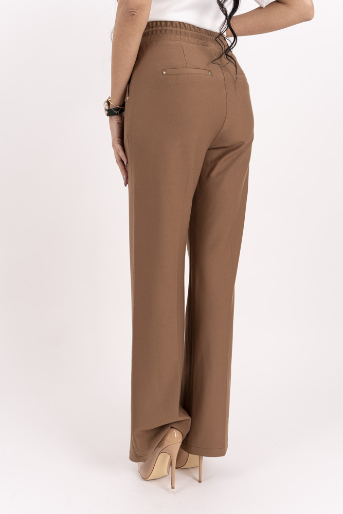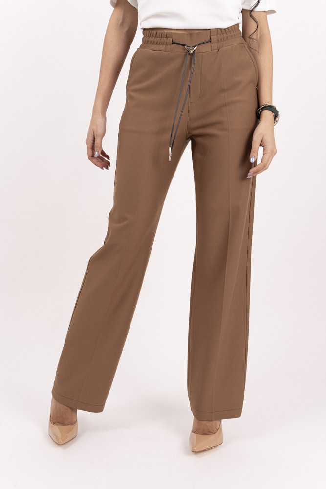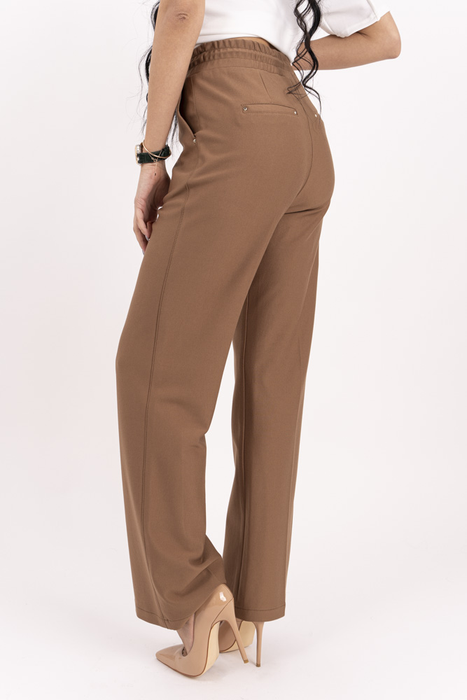 Спортно-елегантен панталон със широк крачол , цвят МОКА (светлокафяво) с връзки и джобове .