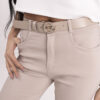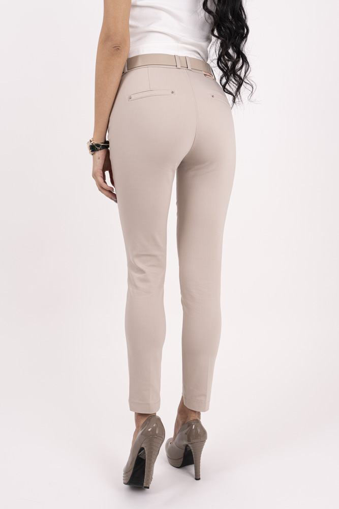 Спортно-елегантен панталон със стеснен крачол , колан на кръста и джобове .