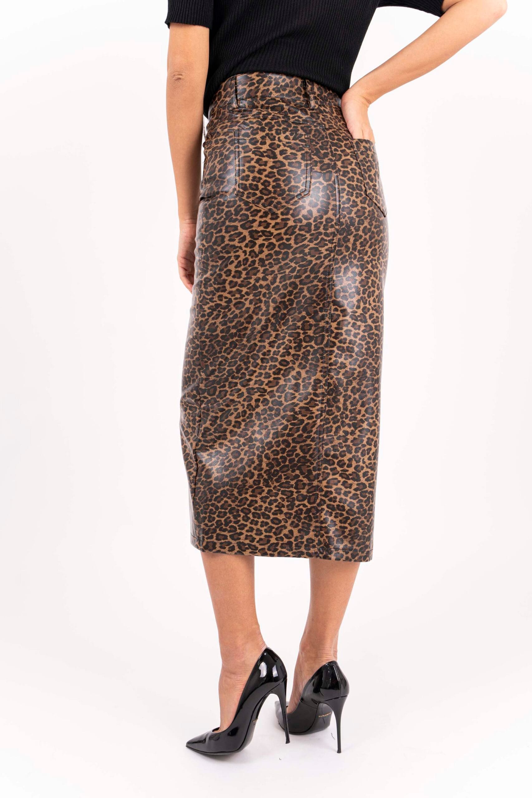 Елегантна дълга пола от еко кожа в леопардов принт.