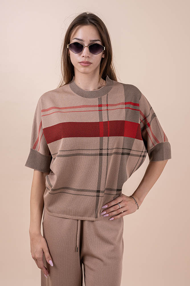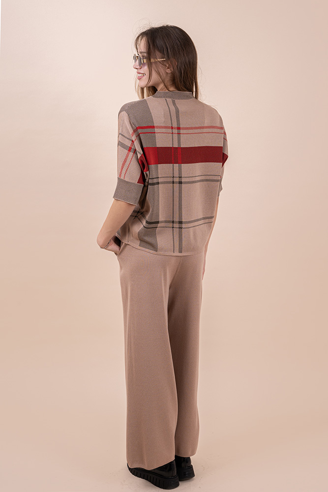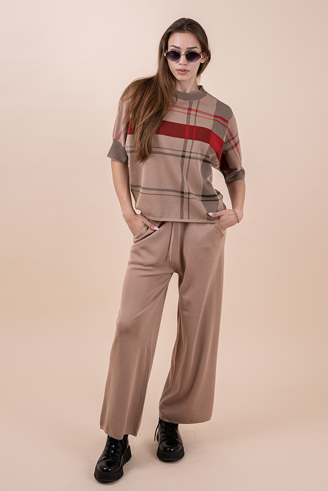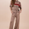 Сет от две части . Блуза 3/4 ръкав със свободна линия , а панталон е с ластик и връзка на кръста.