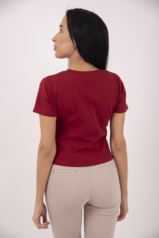 Тениска с красива релефна бродерия в два цвята бяла и бордо.
