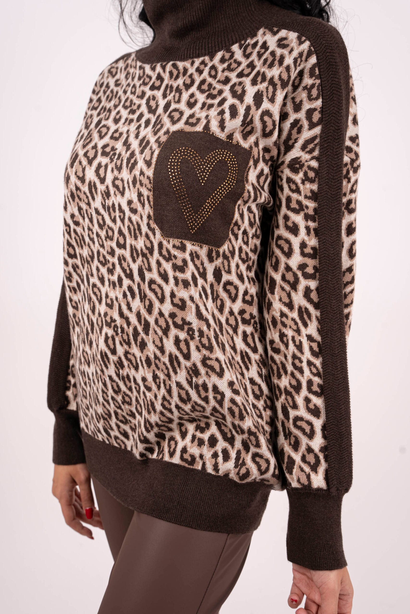 Красива блуза тип поло с леопарден дизайн и джоб със сърце.