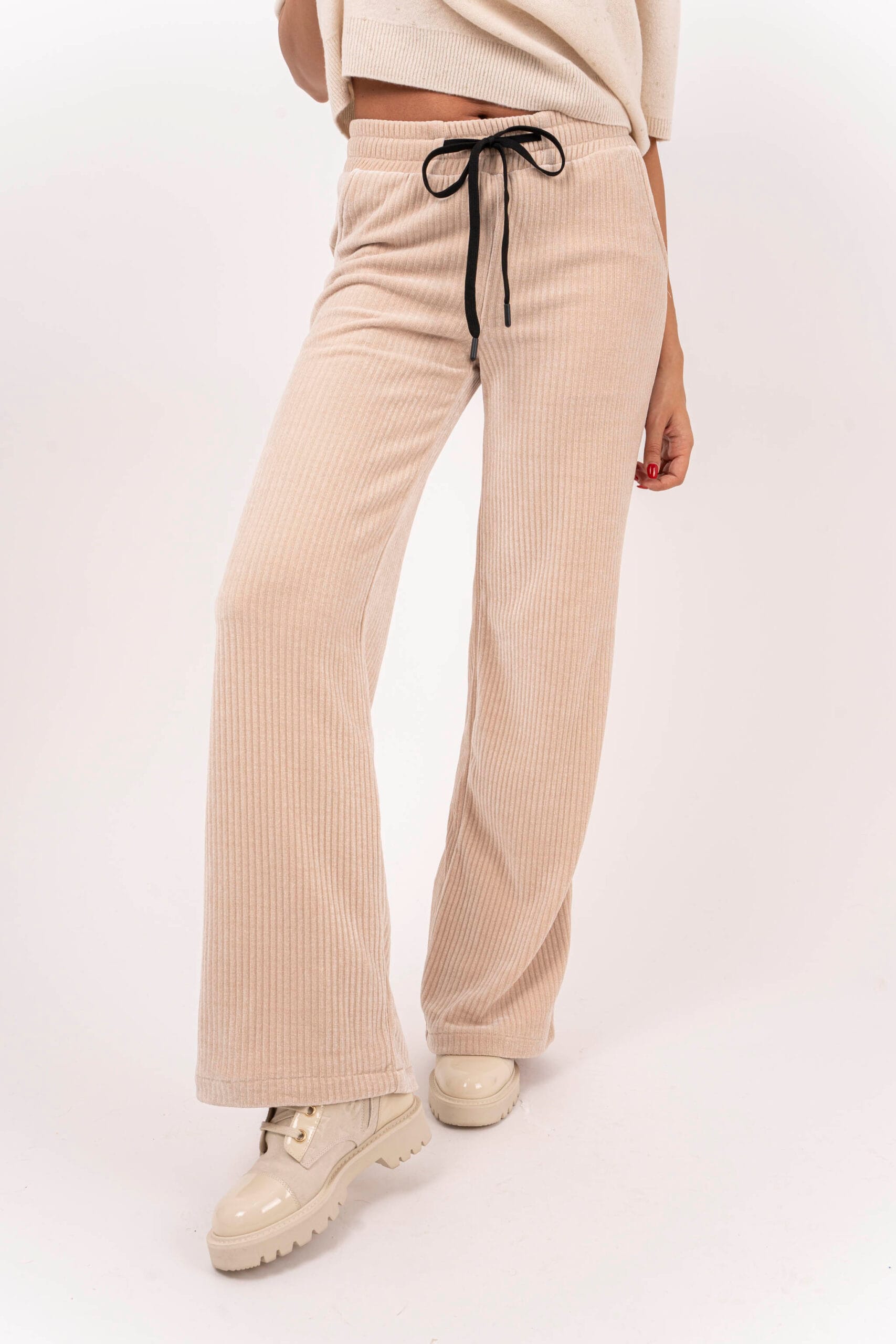 Меки, кадифени панталони с връзки в модерни за сезона цветове.