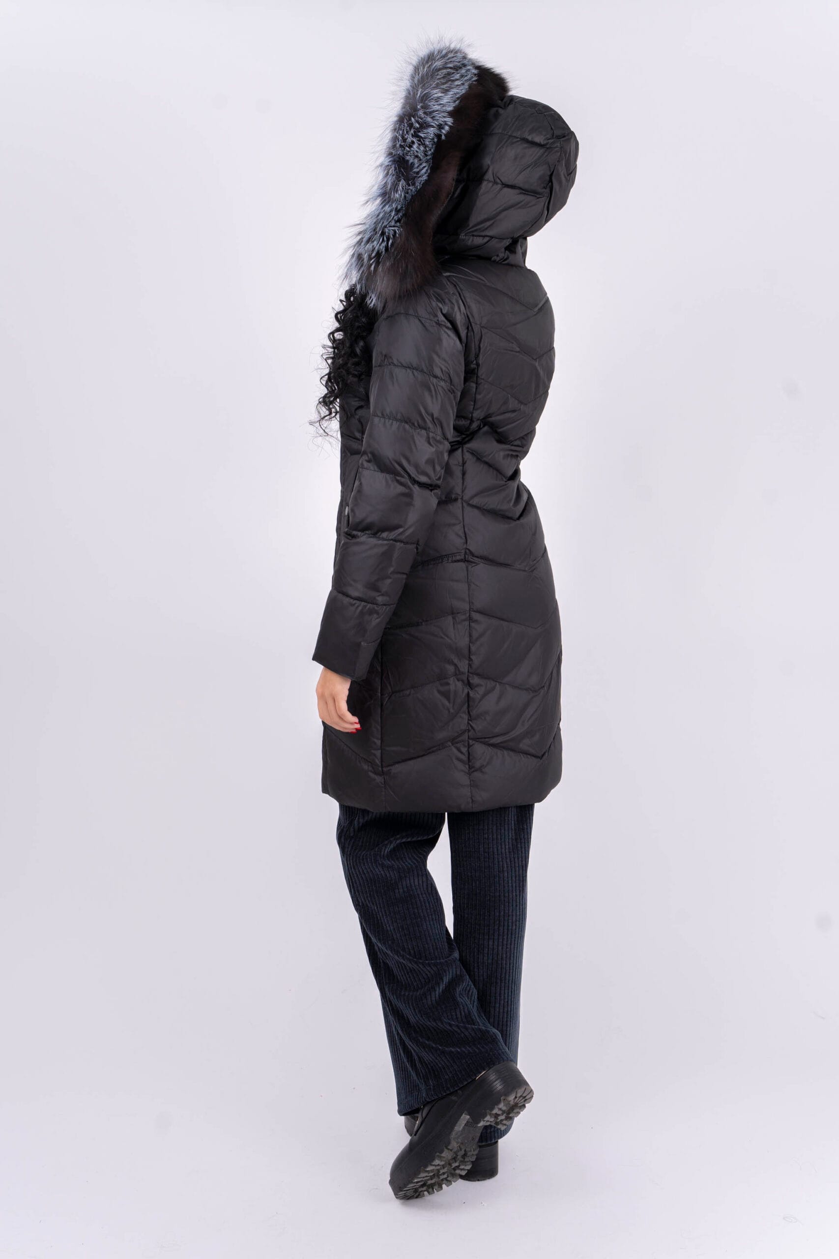 Зимно Дълго Яке с Яка от Естествен Косъм